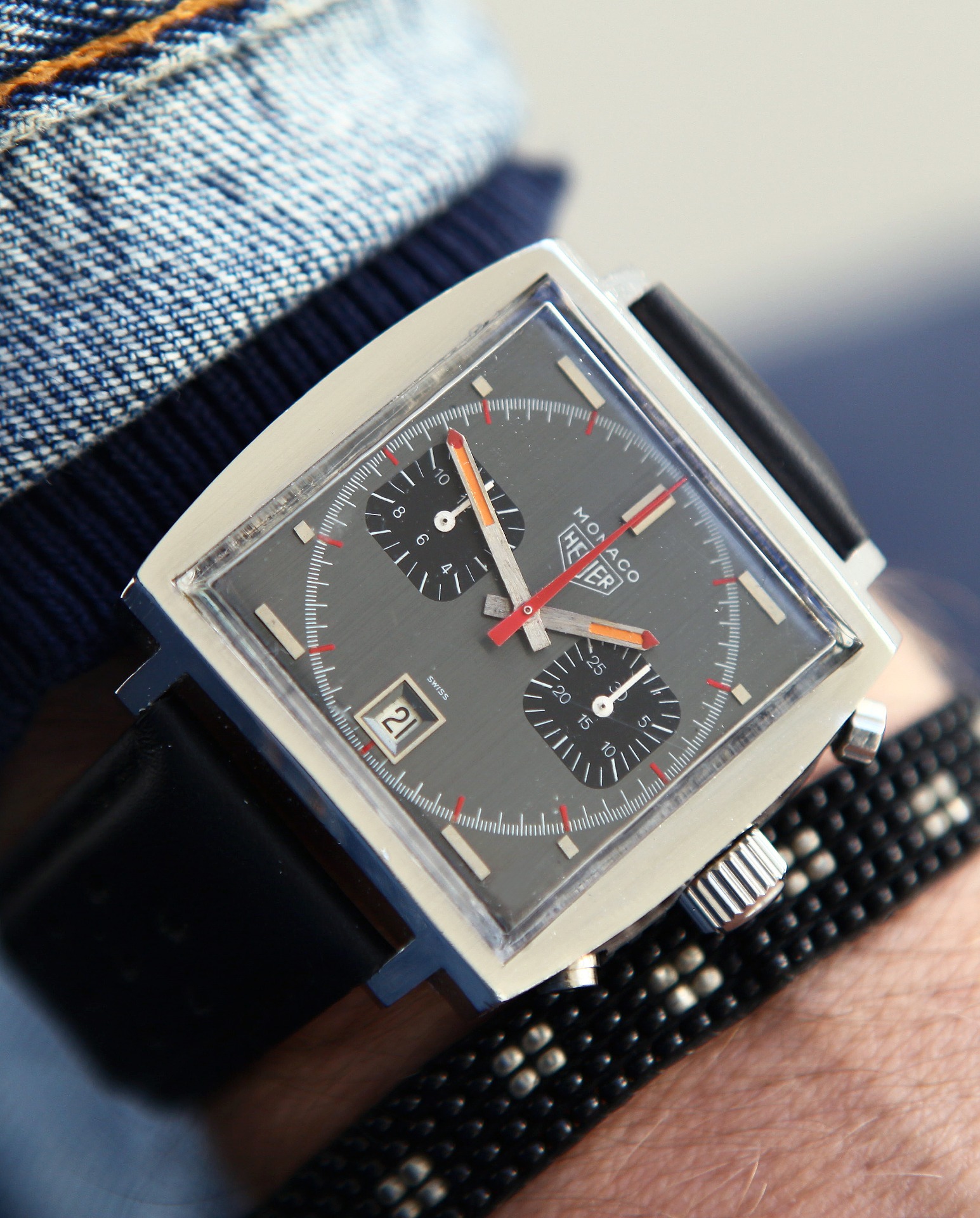 Staré náramkové sportovní hodinky Heuer jsou pro mě esencí krásného designu 60 a 70 let, pokaždé když je mám na ruce cítím ve vzduchu vůni benzínu a mám chuť sešlápnout pedál až na podlahu.